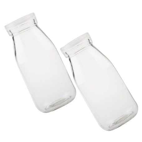 Homoyoyo 2 Stück Milchflaschen aus Hitzebeständigem Glas mit Dicht Schließendem Deckel Bpa frei Tragbare Milchbehälter für Joghurt Saft Mikrowellengeeignet Platzsparend und Auslaufsicher