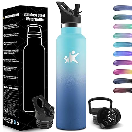 HoneyHolly Stainless Steel Water Bottle, 1 Litre, BPA-Free, Thermos Flask, Leak-Proof Insulated Flask, Double Walled, Water Bottle, Thermos Flask, with Straw, for Carbonated Drinks