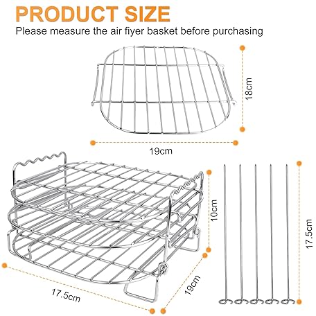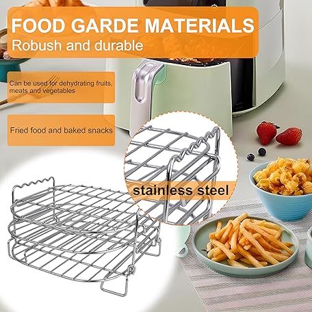 Thông tin sản phẩm Hot Air Fryer Accessories, 3 Tier Hot Air Fryer Cooking Grate Multifunctional Grid Stainless Steel Air Fryer Rack Accessories for Philips Airfryer XL 6.2L HD9270/90 COSORI 5.5L 4.7L Russell Hobbs 4L