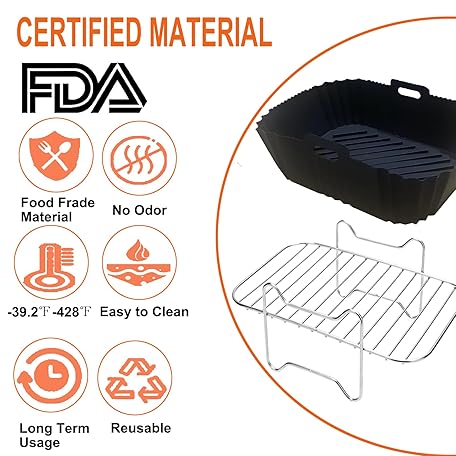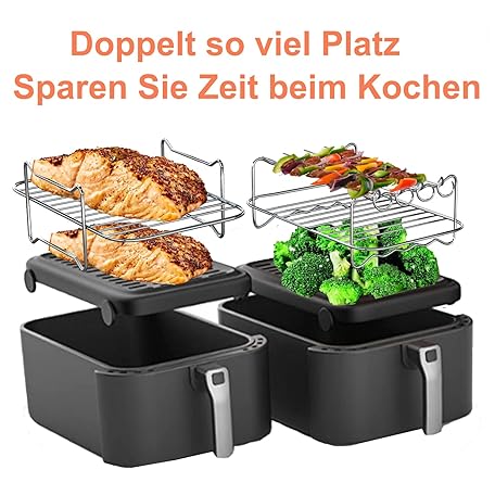 Thông tin sản phẩm Hot Air Fryer Accessories Compatible with Ninja AF300EU 7.6L, COSORI 8.5L, Cookwise Devology Cecotec 9L, Balter Innsky Double Fryers, 6 Pieces Accessory Set with Airfryer Silicone Mould, Cooking Grate