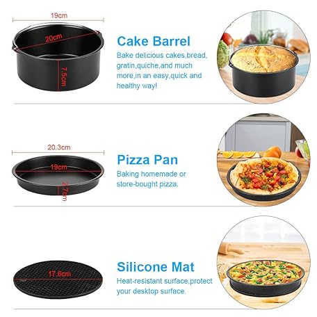 Thông tin sản phẩm Hot Air Fryer Accessory Set, 8 Inch 13-Piece Airfryer Accessory Set for 3.8-5.5 L Hot Air Fryers with Recipes, Non-Stick Cake Moulds, Pizza Tray, Silicone Pan Liner, Muffin Cases etc.