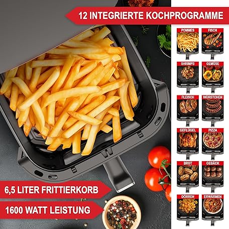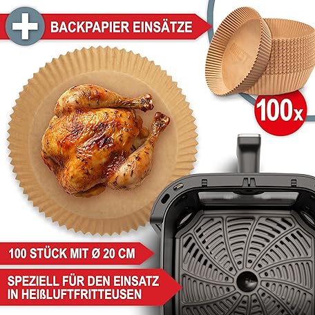 Sản phẩm Hot Air Fryer with Large Viewing Window & 12 Cooking Programmes - XL Airfryer with 6.5 Litres, 1600 Watt Plus 100 x Baking Paper - Frying without Oil for 2-5 People đang được bán với giá ưu đãi là $82.2841 tại nước Đức.