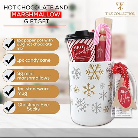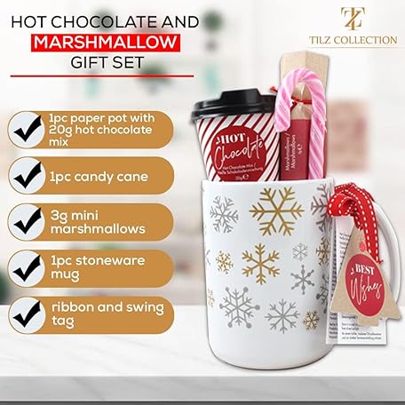 Thương hiệu TILZ COLLECTION là cái tên nổi tiếng được rất nhiều khách hàng trên thế giới chọn lựa. Với kiểu dáng đẹp mắt, sang trọng, sản phẩm Hot Chocolate Mug Gift Set with Mug, Hot Chocolate, Mini Travel Mug and Marshmallows for Hot Chocolate, Gifts for Children, Gifts for Women, Men, Christmas Gifts là sự lựa chọn hoàn hảo nếu bạn đang tìm mua một món cho riêng mình.