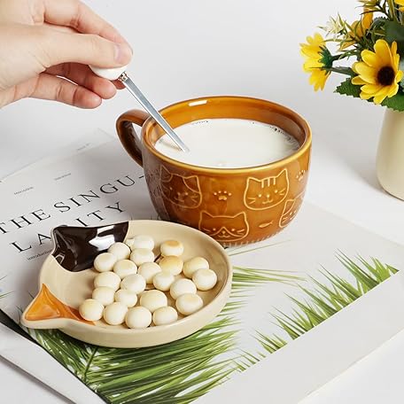 Sản phẩm HOTUT Cute Ceramic Coffee Cup, Bowl Porcelain Coffee Cup with Lid, Spoon, 300 ml, Funny Cat Cup for Tea, Milk, Christmas Mug, Gift for Christmas Day, Brown đang được bán với giá ưu đãi là $15.7396 tại nước Đức.