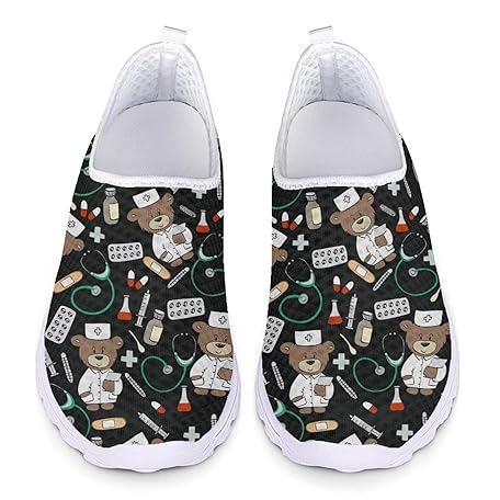 Howilath Cartoon Bär Stillen Schwarze Laufschuhe Bequeme Loafers Freizeitsportschuhe weiche Turnschuhe Mode Trainer für Erwachsene-44