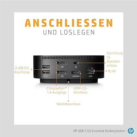 Sản phẩm HP USB-C Docking Station G5 - Universal USB-C Docking Station with 100W Power Delivery, Multi-OS Compatibility, Compact Design, Network Management, Black đang được bán với giá ưu đãi là $150.5399 tại nước Đức.