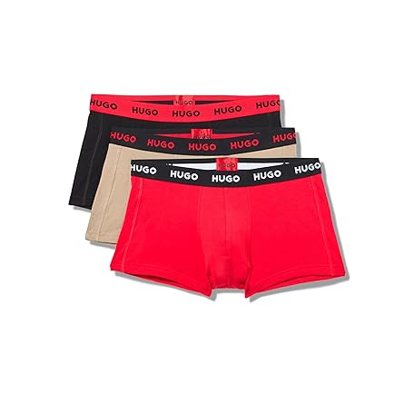 • HUGO Herren 3er-Pack Stretch-Baumwoll-Unterhosen Badehose, Dunkelschwarz/Hellrot/Herbst-Rock-Beige, Large