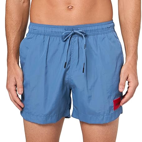 • HUGO Herren Square Logo Swim Trunk Badehose, Acai Blue, XXL