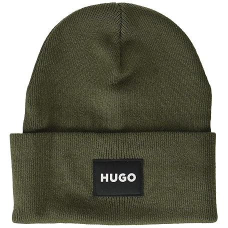 HUGO Men's Beanie Hat Patch Logo Ribbed Beanie
