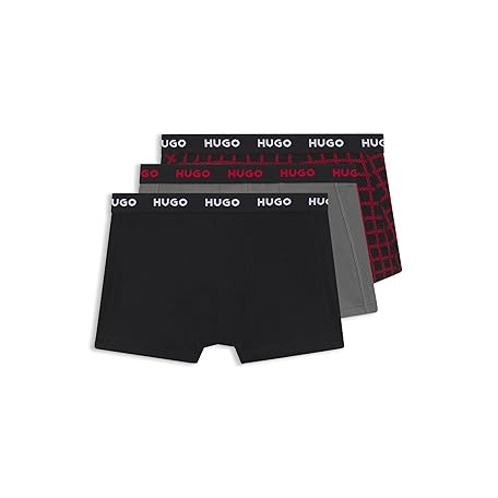 HUGO Men's Trunk Triplet Design Triple Pack Tight Fit Stretch Cotton Boxer Shorts with Short Leg and Logo Waistband