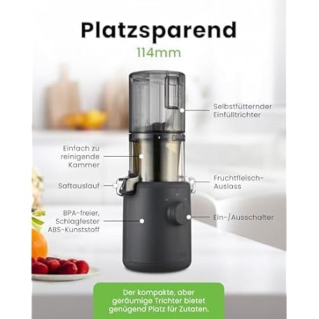 Sản phẩm Hurom Slow Juicer | Juicer Vegetable and Fruit | H310 | Easy to Clean & Quiet Motor Electric Juicer with Strainer Filter | 150 Watt | BPA Free | Slim Design | 220 ml, Anthracite đang được bán với giá ưu đãi là $442.6163 tại nước Đức.