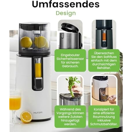 Thương hiệu Hurom là cái tên nổi tiếng được rất nhiều khách hàng trên thế giới chọn lựa. Với kiểu dáng đẹp mắt, sang trọng, sản phẩm Hurom Slow Juicer | Juicer Vegetable and Fruit | H400 | Easy to Clean & Quiet Motor Electric Juicer with Large Container and Strainer Filter 2 L | 150 Watt | BPA Free | White  là sự lựa chọn hoàn hảo nếu bạn đang tìm mua một món  cho riêng mình.