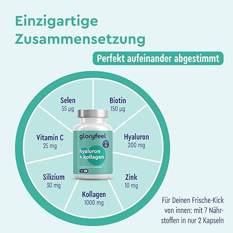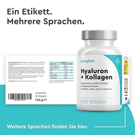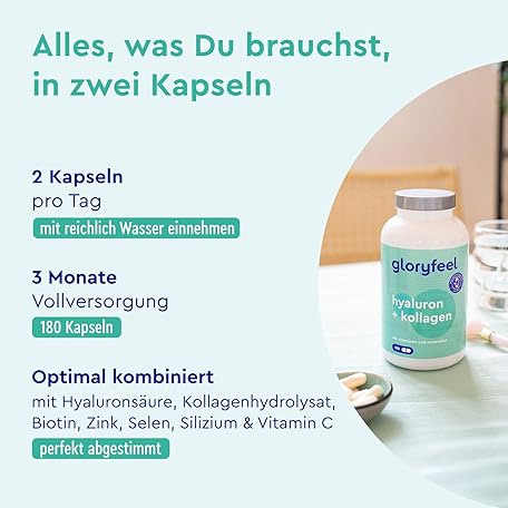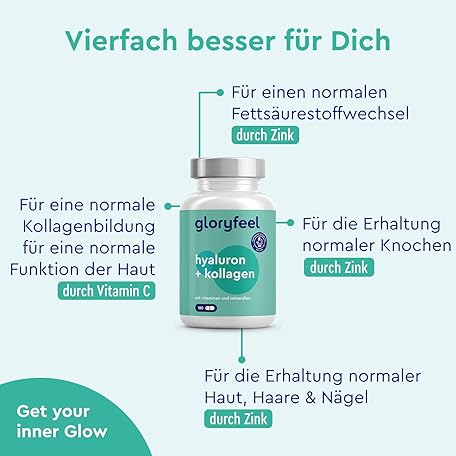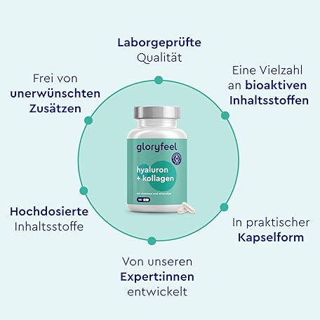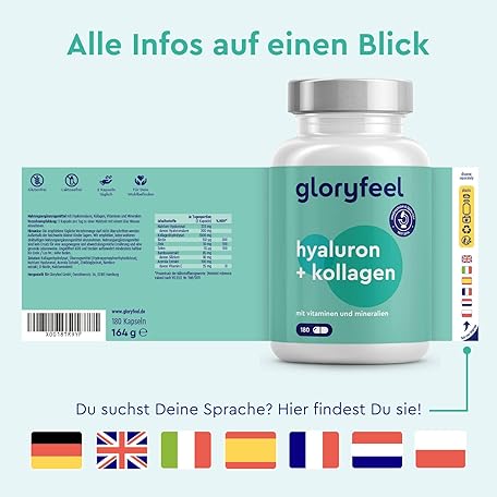 Thương hiệu gloryfeel là cái tên nổi tiếng được rất nhiều khách hàng trên thế giới chọn lựa. Với kiểu dáng đẹp mắt, sang trọng, sản phẩm Hyaluronic Acid + Collagen, 180 Capsules, Premium Skin & Hair Complex, Plus Vitamin C from Acerola, Biotin, Selenium, Zinc & Bamboo Extract, Laboratory Tested in Germany là sự lựa chọn hoàn hảo nếu bạn đang tìm mua một món cho riêng mình.