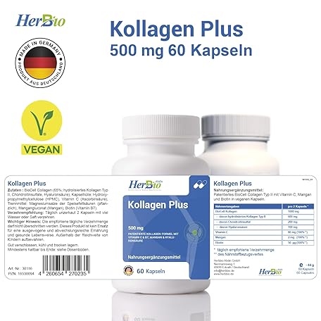 Thương hiệu HerBBio Abdin Herbbio Natural Medical Manufacturing là cái tên nổi tiếng được rất nhiều khách hàng trên thế giới chọn lựa. Với kiểu dáng đẹp mắt, sang trọng, sản phẩm Hyaluronic Acid Collagen Capsules High Dose - 60 Vegan Capsules of 500 mg - Collagen Capsules High Dose - With Biotin, Vitamin C, Magnesium & Vitamin B7 - Laboratory Tested - Made in Germany là sự lựa chọn hoàn hảo nếu bạn đang tìm mua một món cho riêng mình.