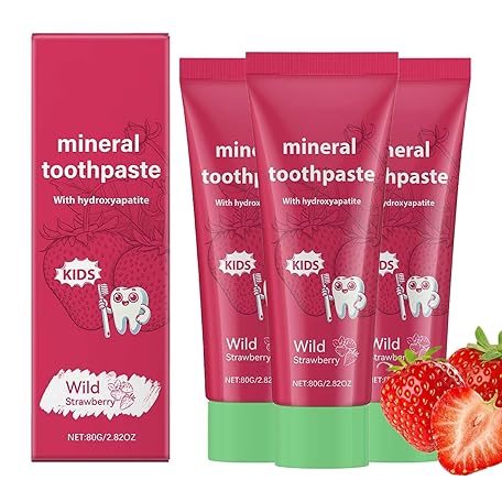 • Hydroxylapa Zahnpasta, Mineral Zahnpasta Whitening Repairing Strawberry Zahnpasten, Zahnschmelz Schutz, Hilft Empfindlicher Zahnaufhellung, für Kinder 2+ (3)