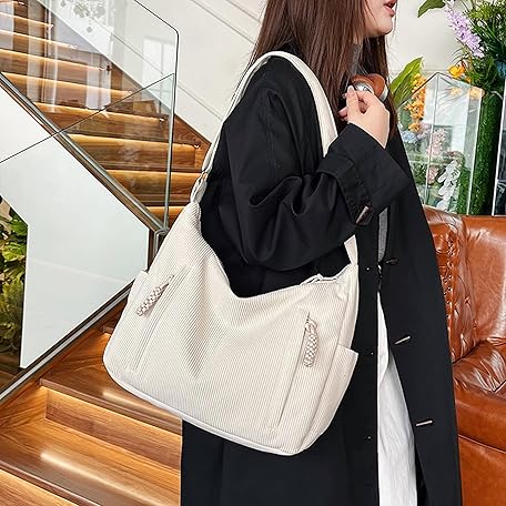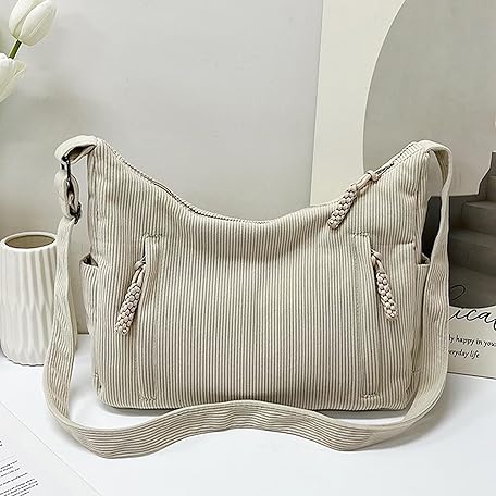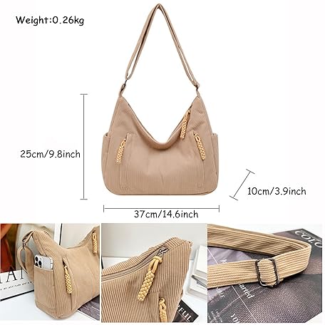 Thông tin sản phẩm ibalulu Shoulder Bag Women's Cord Crossbody Bag Women's Large Shoulder Bag Half Moon Bag for School Office Work Travel Excursion Shopping, beige, Utility