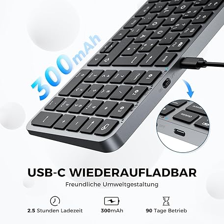 Thông tin sản phẩm iClever Bluetooth Keyboard Mac, Wireless Multi-Device Keyboard with Easy Switch for up to 3 Devices - for PC, Windows, Mac, Chrome OS, Android, iPad OS, German QWERTZ Layout