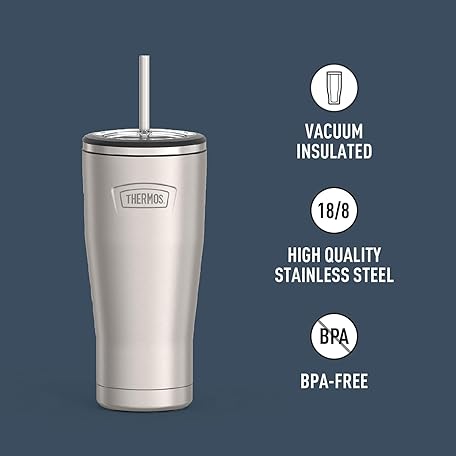 Thông tin sản phẩm ICON SERIES BY THERMOS Stainless Steel Cold Tumbler with Straw, 24 Ounce, Matte Stainless Steel