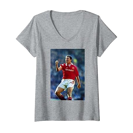 Iconic Photo Moments Ladies Roy Keane Manchester United Goal Tottenham Hotspur Football V-Neck T-Shirt, black, S