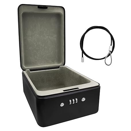 Idena 50119 Steel Security Box Black Safe with Combination Lock and Security Cable, Approx. 20 x 15 x 6.5 cm