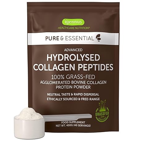 Thông tin sản phẩm Igennus Collagen Hydrolysate Peptides from Certified Grazing - Premium Cattle Collagen Protein Powder, Optimal Solubility, 400 g