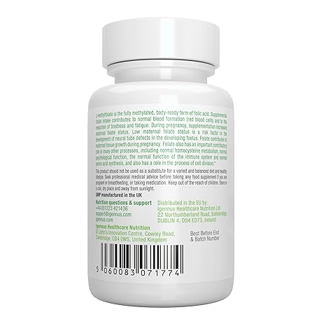 Thông tin sản phẩm Igennus Pure Folic Acid L-Methyl Folate, 400 mcg Per Tablet, 180 Pieces, 1 Per Day, Vitamin B9 Suitable for Pregnancy & Pregnancy