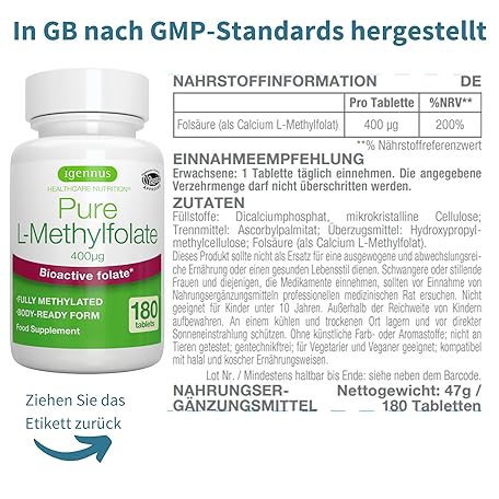 Sản phẩm Igennus Pure Folic Acid L-Methyl Folate, 400 mcg Per Tablet, 180 Pieces, 1 Per Day, Vitamin B9 Suitable for Pregnancy & Pregnancy đang được bán với giá ưu đãi là $25.3098 tại nước Đức.
