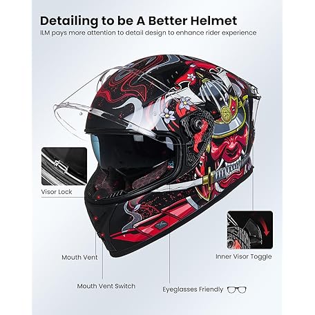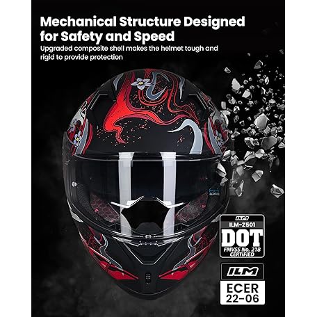 Thông tin sản phẩm ILM Motorcycle Helmet Full-Face Helmet Men Women Motorcycle Helmet with 2 Visors Pinlock Compatible Clear and Tinted Street Bike Motocross Casco DOT & ECE Model Z501, Armor Red, L