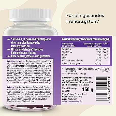Thông tin sản phẩm Immune Complex Gummies for Strengthening the Immune System, 4-in-1 Immune Formula for Adults with Vitamin C, Zinc, Vitamin D3 and Selenium, Elderberry Flavour, Vegan without Artificial Sweetness and