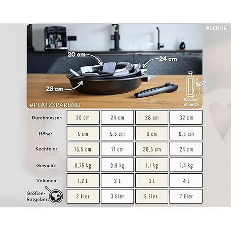 Thông tin sản phẩm Induction Frying Pan Set, 20 cm, 24 cm, 28 cm, Non-Stick Coating, Aluminium, Non-Stick Frying Pans - Highly Suitable for Induction Cookers, Removable Handle + Pan Protector