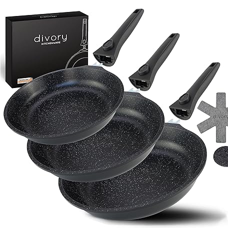 Thương hiệu DIVORY là cái tên nổi tiếng được rất nhiều khách hàng trên thế giới chọn lựa. Với kiểu dáng đẹp mắt, sang trọng, sản phẩm Induction Frying Pan Set, 20 cm, 24 cm, 28 cm, Non-Stick Coating, Aluminium, Non-Stick Frying Pans - Highly Suitable for Induction Cookers, Removable Handle + Pan Protector là sự lựa chọn hoàn hảo nếu bạn đang tìm mua một món cho riêng mình.