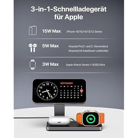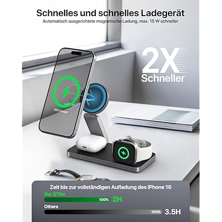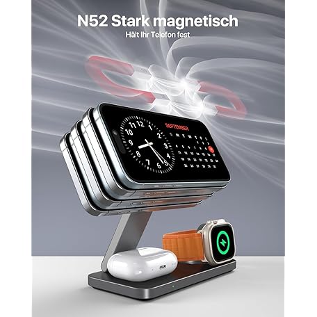 Sản phẩm Inductive Charging Station Compatible with Magsafe Charger, QTlier 3-in-1 iPhone Charging Station for Air 17/16/15/14/13/12 Series, 20 W Wireless Charger for Apple Watch 10/9/8/7/6/5/4/3 and AirPods đang được bán với giá ưu đãi là $38.6841 tại nước Đức.