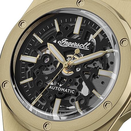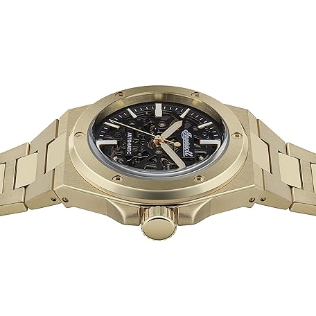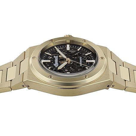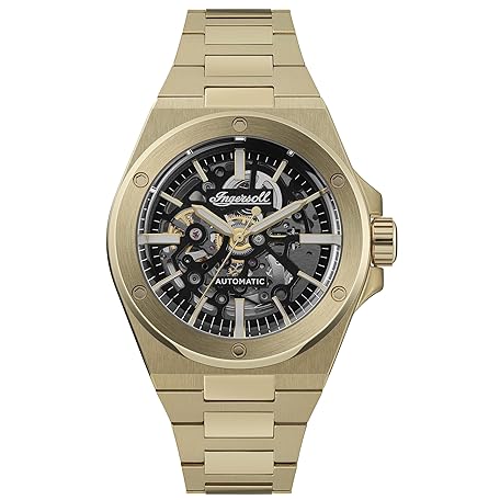 Sản phẩm Ingersoll The Baller 45 mm Automatic Men's Watch with Black Skeleton Dial and Gold Stainless Steel Bracelet đang được bán với giá ưu đãi là $245.0211 tại nước Đức.