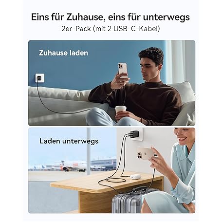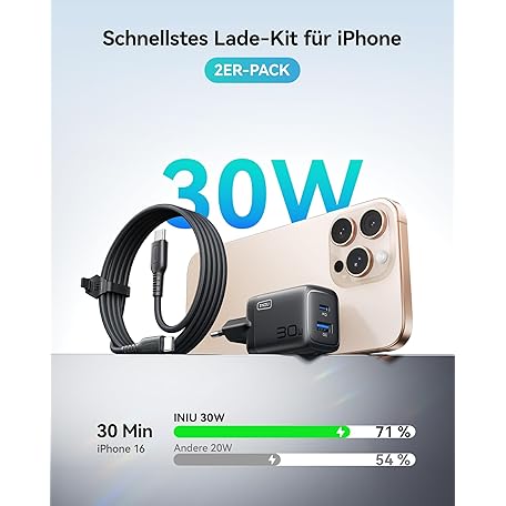 Sản phẩm INIU 30 W USB C Charger Pack of 2, [USBC + USBA] Fast Charger with Cable, GaN PD Multiple Power Supply, USB C Charger for iPhone 17 16 Pro Max, iPad Pro, MacBook Air, Galaxy S25 S24 S23 Ultra, Google đang được bán với giá ưu đãi là $19.293 tại nước Đức.