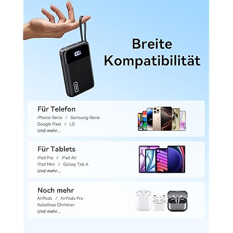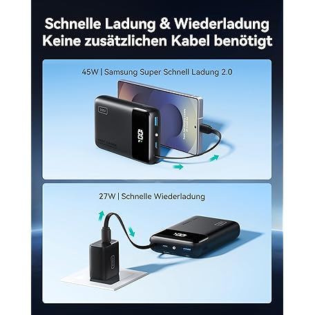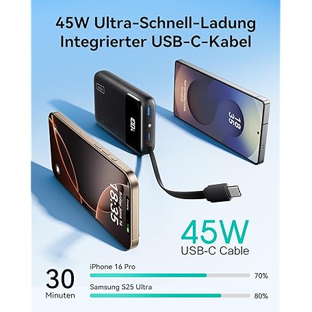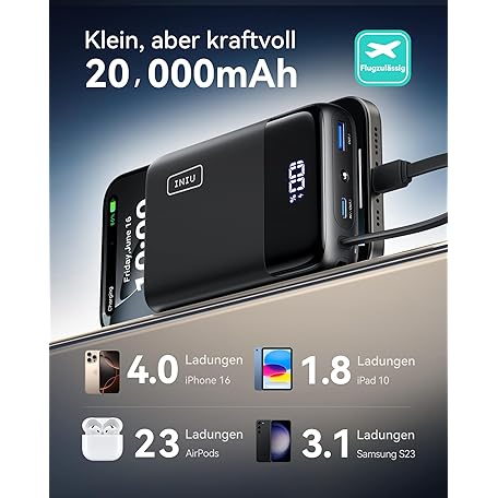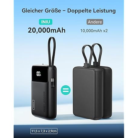 Sản phẩm INIU 45 W Power Bank, 20000 mAh Small Power Bank with Integrated USB-C Cable, Mini Size External Mobile Phone Batteries, USB-C In & Out, Small But Strong for iPhone 17 16 15 14 13 Laptop Samsung đang được bán với giá ưu đãi là $36.0572 tại nước Đức.