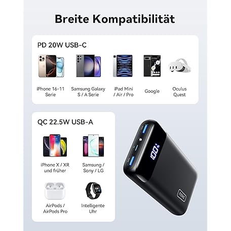 Sản phẩm INIU Power Bank, 20000mAh 22.5W Klein Schnellladefunktion Powerbank 1 USB-C, 2 USB-A Mini Externe Handyakkus LED Display, Akkupack für iPhone 17 16 15 14 13 Xiaomi Samsung iPad Travel Camping Outdoor đang được bán với giá ưu đãi là $31.1413 tại nước Đức.