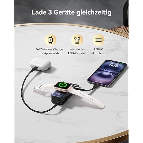 Sản phẩm INIU Power Bank, 5000 mAh 20 W PD Mini Power Bank with Integrated USB-C Cable, Accessories for Apple Watch, Power Bank Travel Accessories for Apple Watch Ultra 11 10 9 8 7 6 SE, iPhone 17 16 15 đang được bán với giá ưu đãi là $27.5552 tại nước Đức.