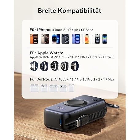 Thông tin sản phẩm INIU Power Bank, 5000 mAh 20 W PD Mini Power Bank with Integrated USB-C Cable, Accessories for Apple Watch, Power Bank Travel Accessories for Apple Watch Ultra 11 10 9 8 7 6 SE, iPhone 17 16 15