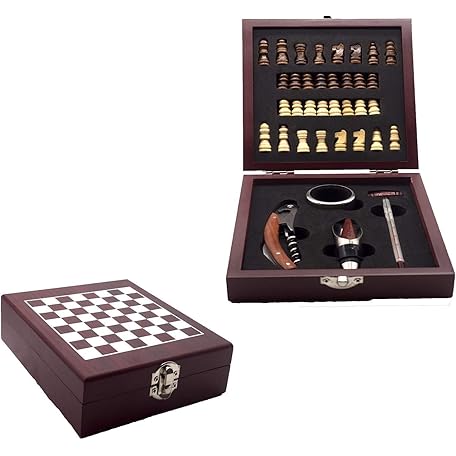 InnovaGoods Set of Accessories for Wine and Chess, Wood and Stainless Steel, Brown, 15 x 5 x 17 cm