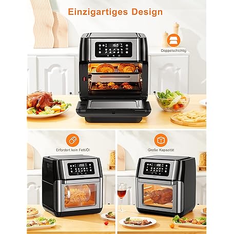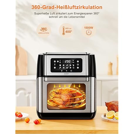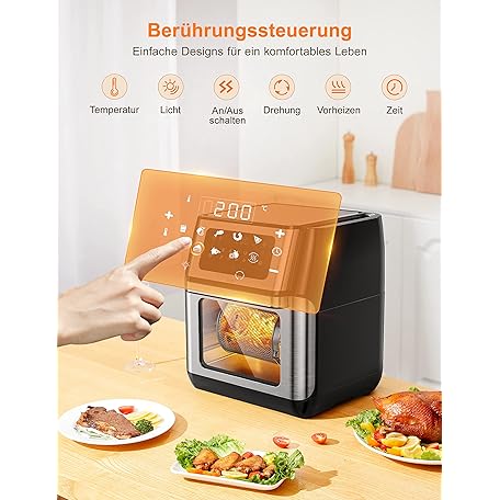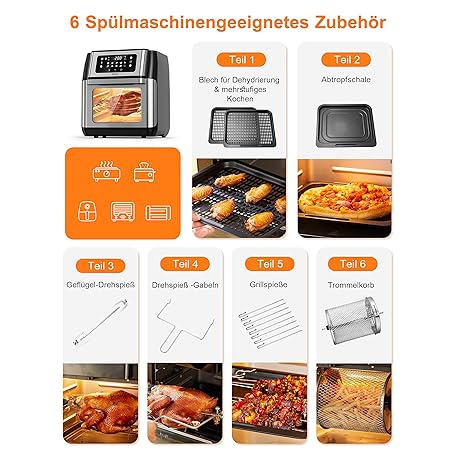 Thông tin sản phẩm Innsky Hot Air Fryer 10 L, 1500 W Airfryer Hot Air Fryer with 10 Programmes, Hot Air Oven with 6 Accessories, Air Fryer without Oil, Stainless Steel Hot Air Oven with LED Touch Screen, Recipe Book