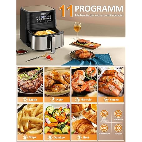 Sản phẩm Innsky hot air fryer 5.5 litre XXL stainless steel with digital LED display, 7 programmes, 1700 W hot air fryer with 32 recipe book, without ?L deep fryer hot air fryer (latest version). đang được bán với giá ưu đãi là $101.9804 tại nước Đức.