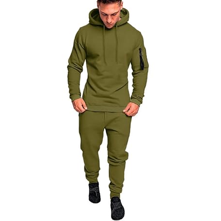 Insenver Herren-Sweatsuit-Set, 2-teilig, Hoodie-Outfit, Jogging-Trainingsanzüge für Herren, lässig, athletisch, langärmelig, Pullover-Anzug-Set, Army Green 1, Large