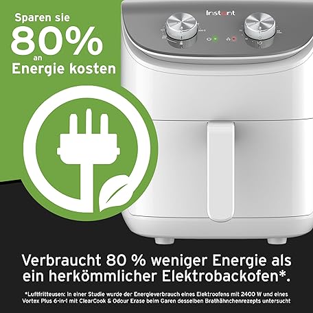 Sản phẩm Instant Hot Air Fryer, 3.8 L, White, Small Compact Fryer, Non-Stick Coating, Dishwasher Safe Basket, Cooks 2-4 Servings, Timer with Rotary Switch, Energy Saving and Oil-Free, 1500 W đang được bán với giá ưu đãi là $45.126 tại nước Đức.