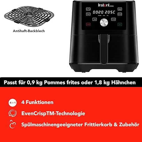 Thông tin sản phẩm Instant Pot Brands Vortex 4-in-1 Hot Air Fryer 1650 W, 3.7 L – with Roasting Dish & Mini Oven, Healthy Hot Air Frying, Baking, Roasting and Food Warmer, Black
