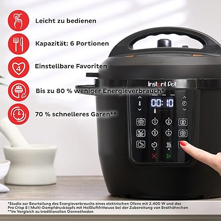 Sản phẩm Instant Pot Multicooker, 5.7 L 7-in-1 Smart Cooker, Pressure Cooker, Slow Cooker, Rice Cooker, Saute Pan, Yoghurt Maker, Steamer and Food Warmer, Black đang được bán với giá ưu đãi là $150.5944 tại nước Đức.