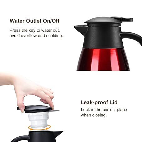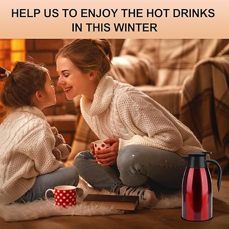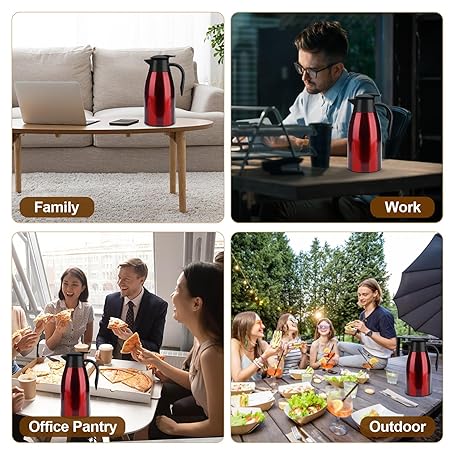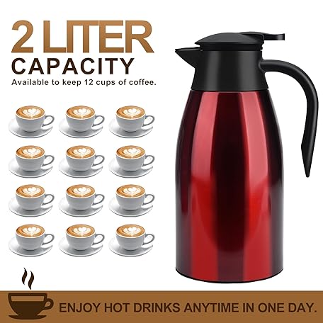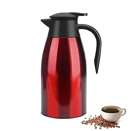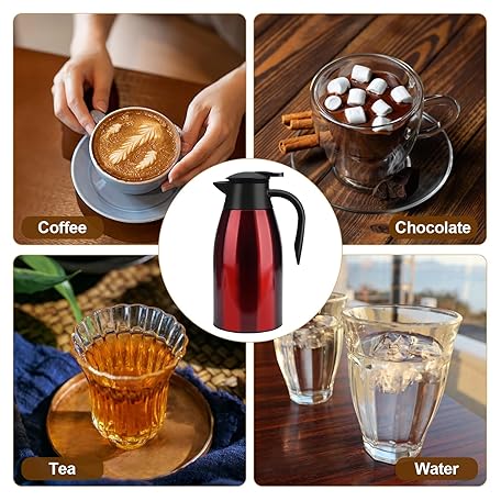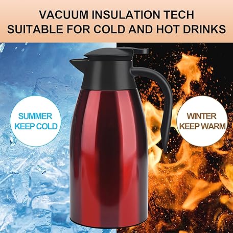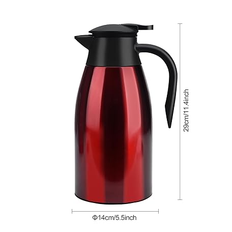 Thông tin sản phẩm Insulated Jug 2 Litres, Stainless Steel Thermos Flask, Large Opening, Thermos Flask Keeps Hot for 12 Hours, Ideal as a Coffee Pot or Teapot, Pot for 12 Cups (Red)