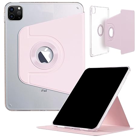 iPad Pro 3rd 4th 5th 6th (12.9 Inch) 2022 2021 2020 2018 Case, DMaos Magnetic Removable Smart Cover, Foldable Stand, 360° Rotatable - Pink