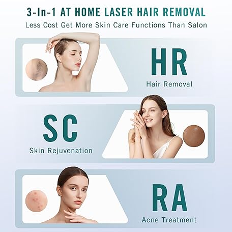 Thông tin sản phẩm IPL Hair Removal Device for Women & Men - 3-in-1 (HR/SC/RA) with Sapphire Ice Cooling, Painless & Permanent Reduction, 999,900 Flashes for Body, Face, Legs, Arms, Bikini Zone