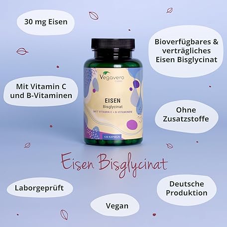 Sản phẩm Iron Bisglycinate Vegavero®, 30 mg iron, with natural vitamin C, folic acid Quatrefolic®, vitamin B12, B6 & B2, vegan and without additives, 120 capsules đang được bán với giá ưu đãi là $23.9582 tại nước Đức.