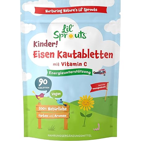 Iron Vitamin C Children's Chewable Tablets | 3 Months Supply - 90 Vegan Tablets | Natural Berry Flavour | Iron for Kids | Lil' Sprouts